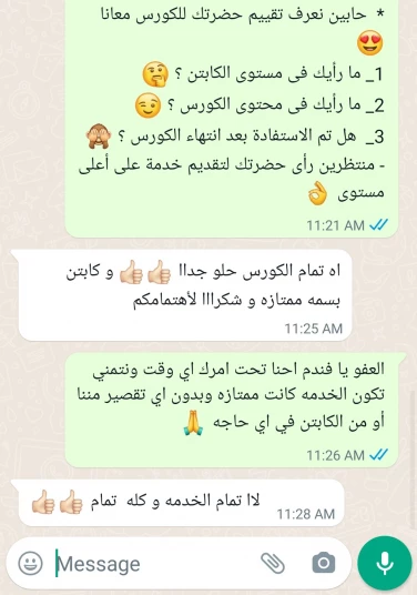 جميع أراء عملائنا بعد انتهاء الكورس