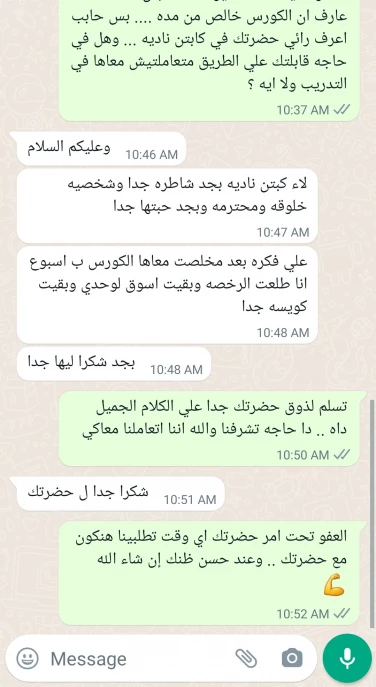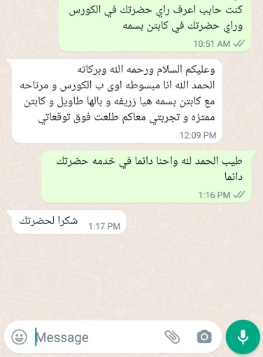 كورس شامل والكابتن محترم جدا وذوق وبيشرح بوضوح وهتستفاد منه.